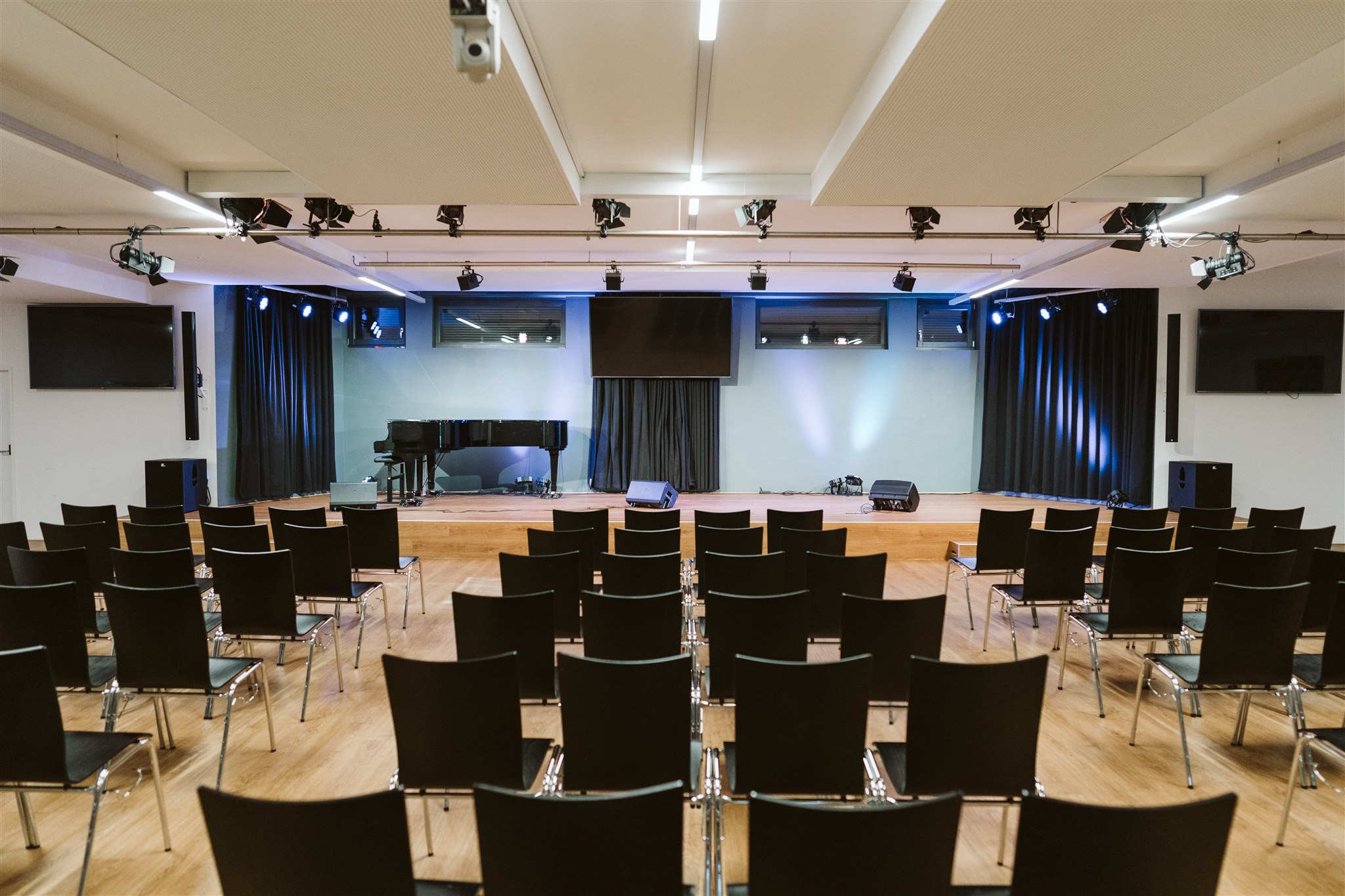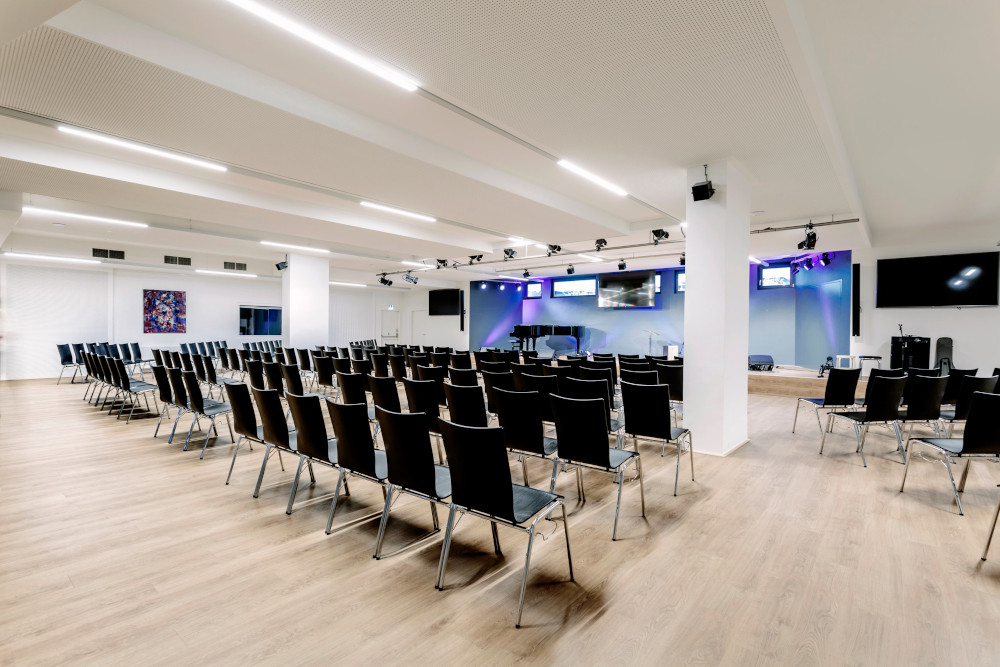 Neben dem großen Saal stehen Räume für Kindergottesdienst und Meetings zur Verfügung.